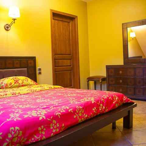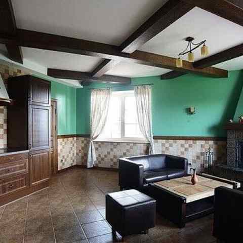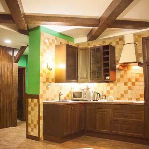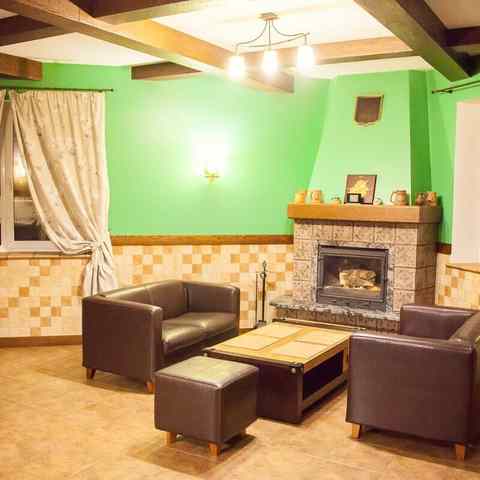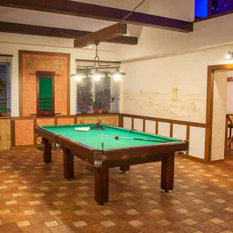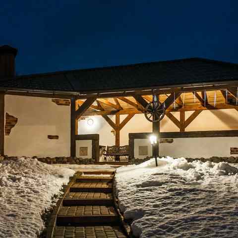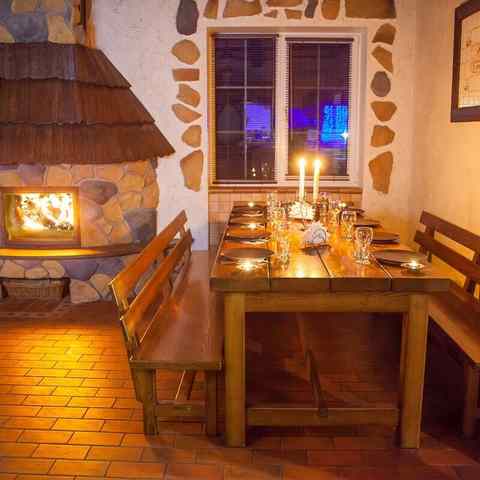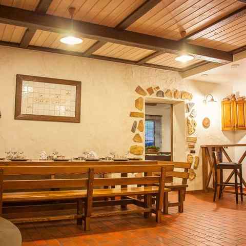 Также здесь находятся два дома: большой и маленький. Переступив порог большого дома, попадаешь в огромный зал для отдыха с камином, который прекрасно согревает гостей холодными вечерами. Но это больше для романтиков. А вот для тех, кто приехал в Юхновку оздоровиться, предназначена настоящая русская баня с вениками и таким парком, что аж дух захватывает. Парилка на 8 человек оснащена светотерапией. Остудиться можно в большом крытом бассейне или обдав себя из ушата с холодной водой. Продолжить развлечения гости могут за русским бильярдом или в комнате с караоке. По всему дому проведено спутниковое телевидение, есть современная аудиосистема и бестабачный безникотиновый кальян. А после наполненного эмоциями дня каждый гость сможет хорошо отдохнуть — с комфортом размещается на ночлег до 15 человек.